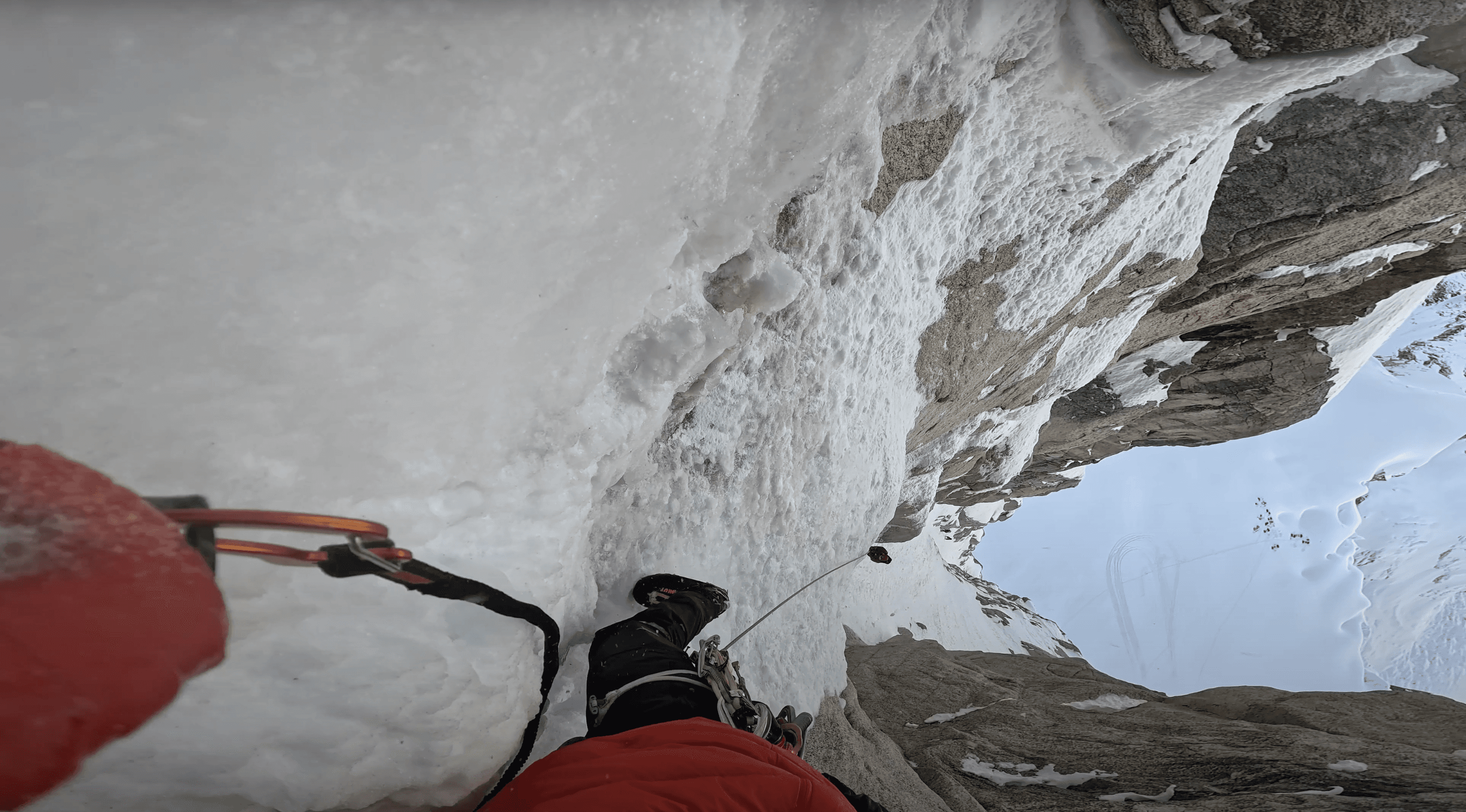 Sharp crampons with vertical front points work best for this ice climbing route. Check our gear list for the current best model.