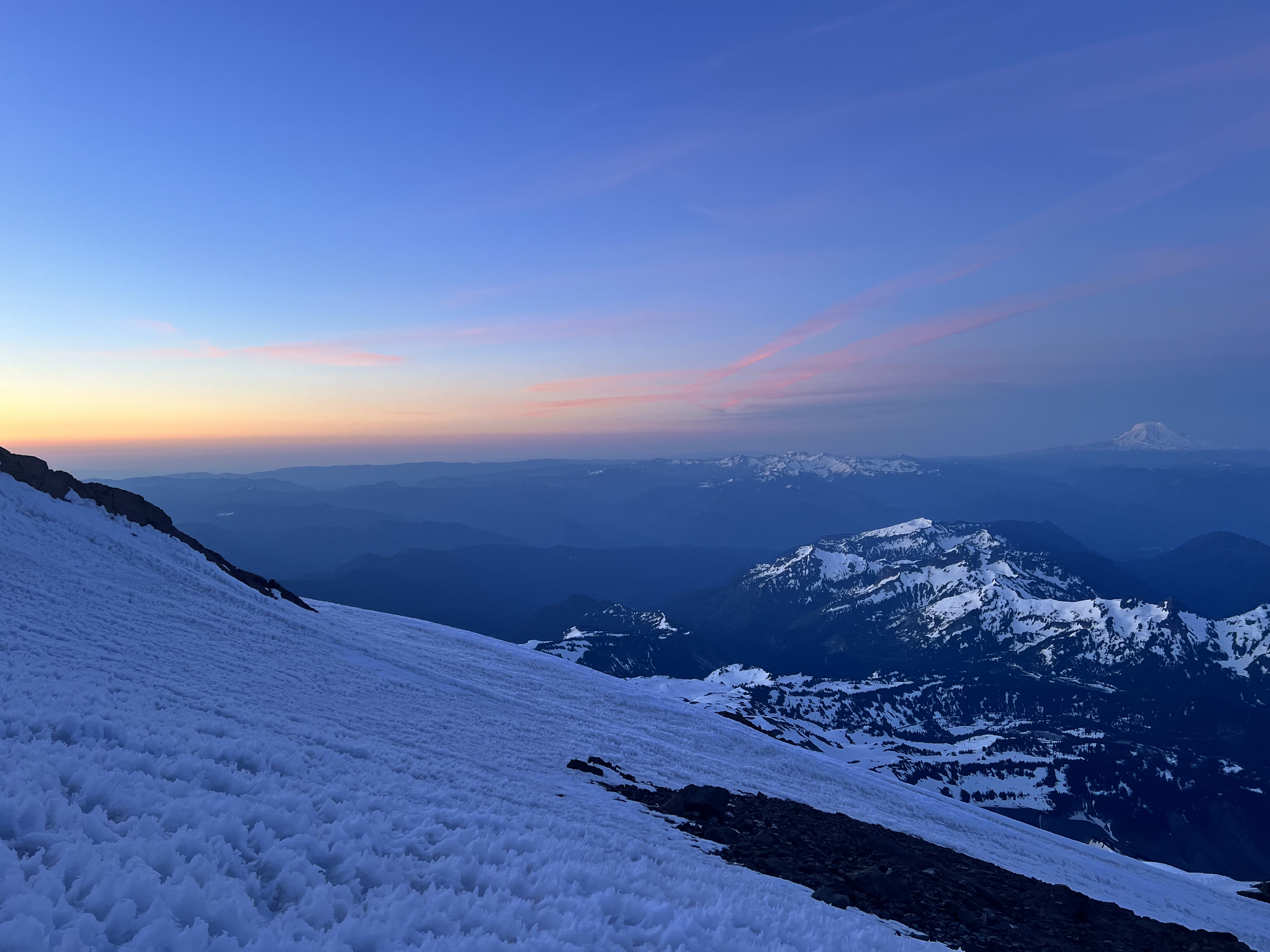 Today is a camp-to-camp summit push on one of the Cascades' most aesthetic routes. We'll climb steep snow or ice up Winnie's Slide and Hell's Highway, working our way toward the Upper Curtis and Sulphide Glaciers. After crossing the glaciers and navigating around crevasses, we reach the exposed summit pyramid where we'll climb 4th to low 5th class rock to gain the beautiful summit. The views from the top are absolutely spectacular—a 360-degree panorama of the North Cascades. We'll reverse our route back to camp, downclimbing and rappelling technical sections as needed. Summit days typically run 8-12 hours depending on conditions and pace.