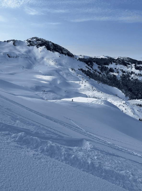 The summit climb! Our day begins with breakfast and hot drinks just before sunrise. We then begin climbing up from camp. The Easton Glacier is a fun snow climb where we will use our cramponing, ice axe and rope travel skills as we climb past crevasses. As we slowly and steadily climb up Mount Baker our guides will continue to offer coaching and encouragement to give everyone their best chance to reach the top. After enjoying the views and summit congratulations, we transition to skis for the descent—over thousands of feet of skiing in an incredible environment back to camp.