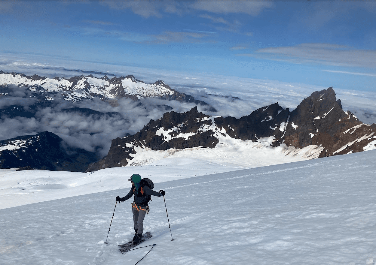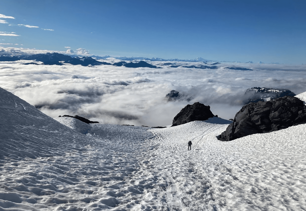 After summit day, the team will normally wake up with the sun and enjoy a nice breakfast and coffee together, recounting the powerful experience that everyone had on summit day. We then hike back to the trailhead from our camp and savor the views of Baker as we make our way down. The hike down normally takes between 2-3 hours. We generally arrive back at the town of Sedro-Woolley by early afternoon where teams will oftentimes choose to get lunch together to celebrate their climb and ski on Mount Baker. If you're considering booking a flight after the trip, make sure to book a flight after 7PM to ensure that you have enough time to make it to the airport.