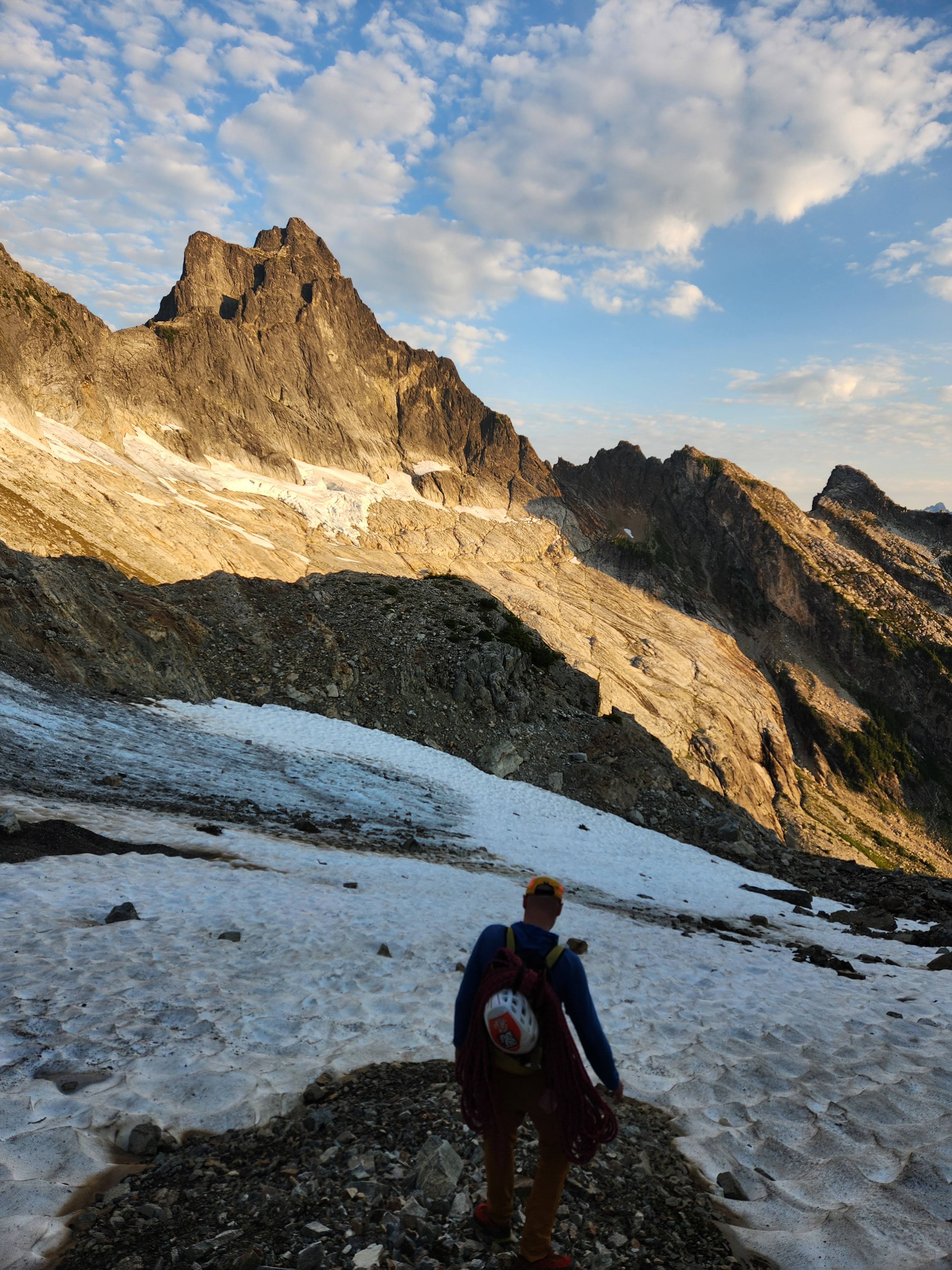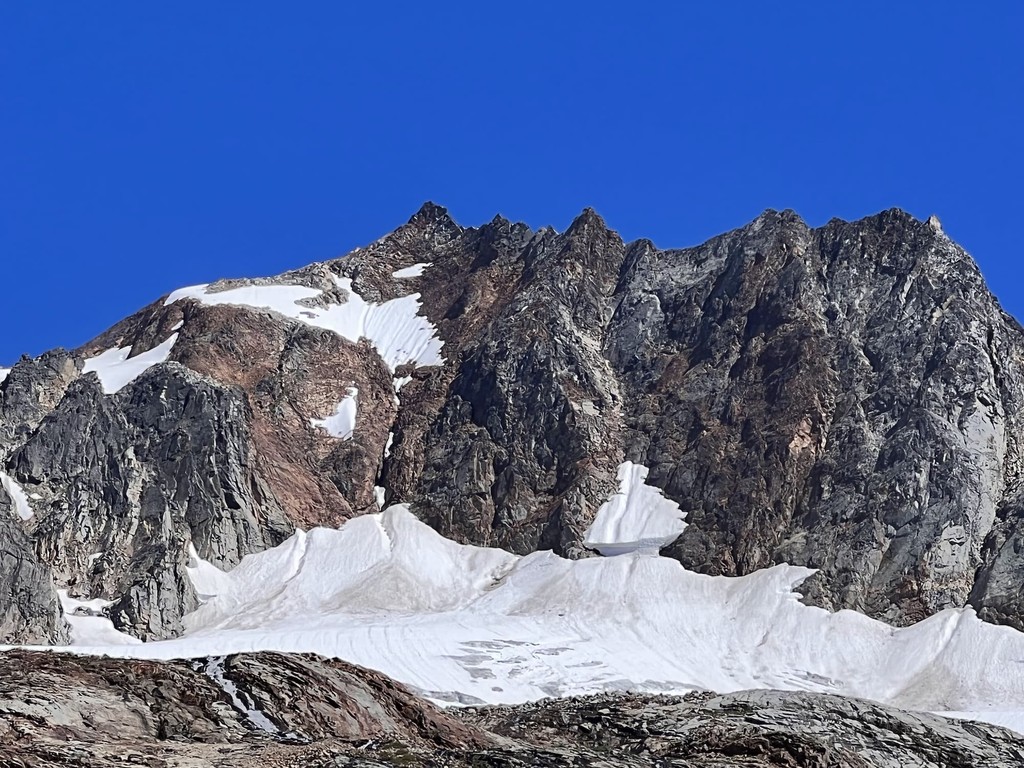 We camp near the toe of the Sahale Glacier at around 7,200 feet in one of the most spectacular alpine settings in the Cascades. You'll be surrounded by towering peaks, glacier views, and incredible sunset and sunrise light. It's an unforgettable night in the high alpine.