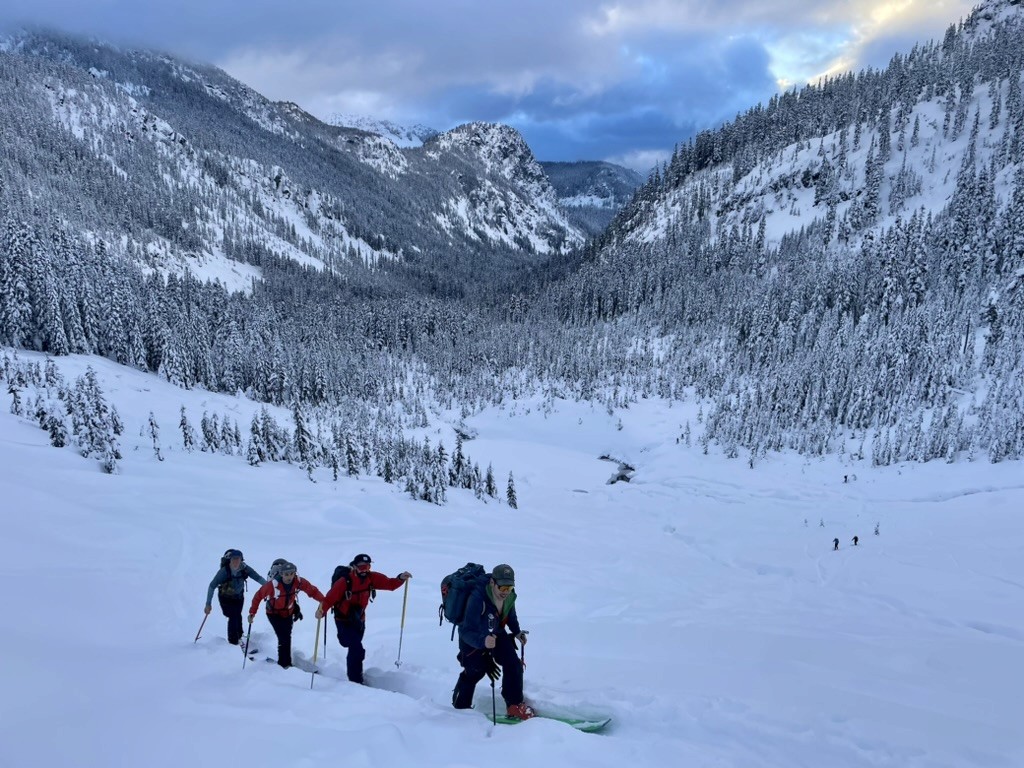 We work with skiers of all skill levels to level up their backcountry skiing skills at Snoqualmie Pass.