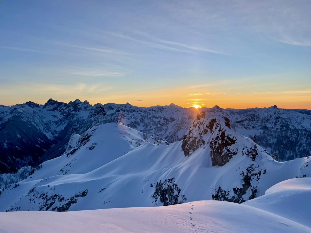 Snoqualmie Pass is an ideal playground for anyone looking to get into backcountry skiing. It's a great place for beginners and those learning essential avalanche safety skills. Intro skiers can explore gentle slopes while gaining confidence on their first skins, practicing transitions, and learning to read snow conditions. Our guided programs focus on building solid foundational skills, including route-finding, avalanche awareness, and safe travel in the backcountry, all within a conveniently accessible location. For more advanced skiers, Snoqualmie Pass offers challenging terrain and technical objectives that simulate true ski mountaineering experiences. Steeper lines, complex descents, and alpine routes allow skilled skiers to refine their technical abilities while safely navigating real-world conditions. With expert guidance, participants can push their limits and experience the full spectrum of backcountry skiing—from learning the basics to skiing the steepest couloir of their life.